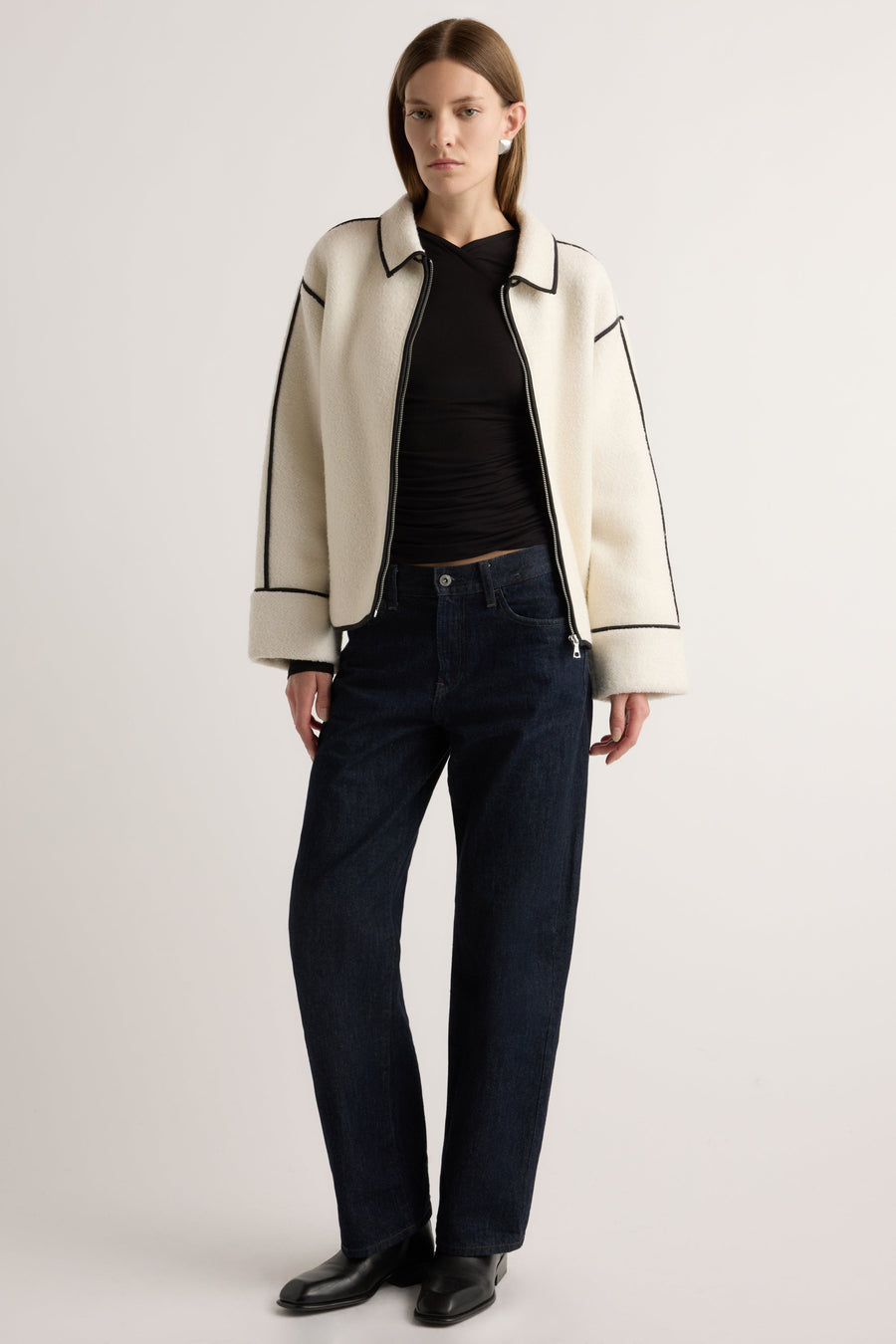 Such a great jacket that matches everything, and very well fitting. I would size up if you expect to wear with a thicker sweater.