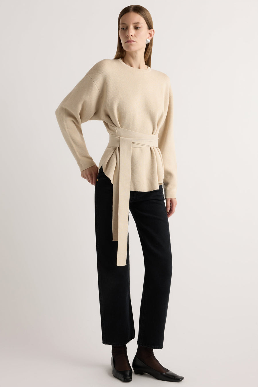 Love this sweater. Great fabric weight and flattering tie waist. Easy to dress up or down.