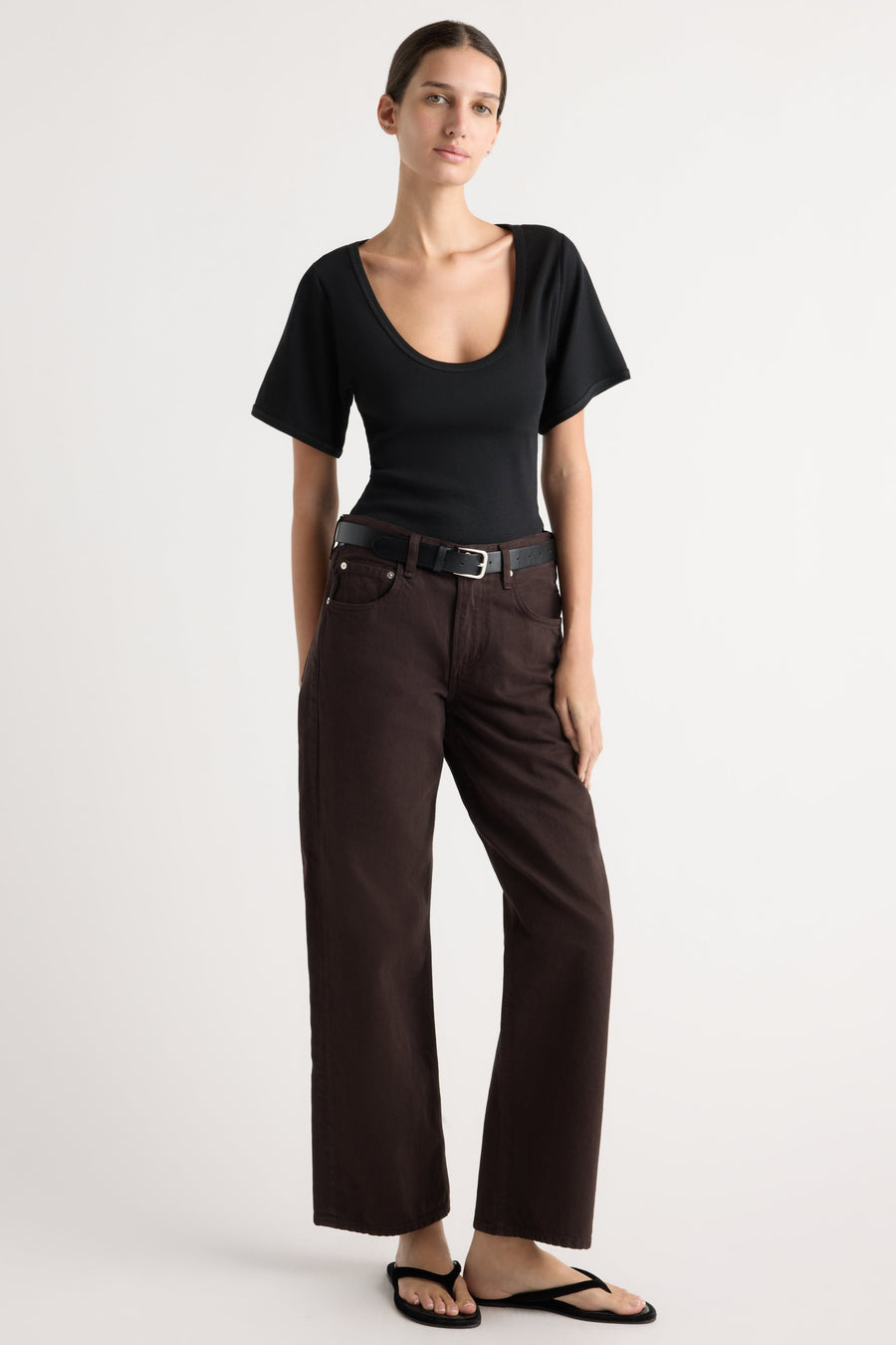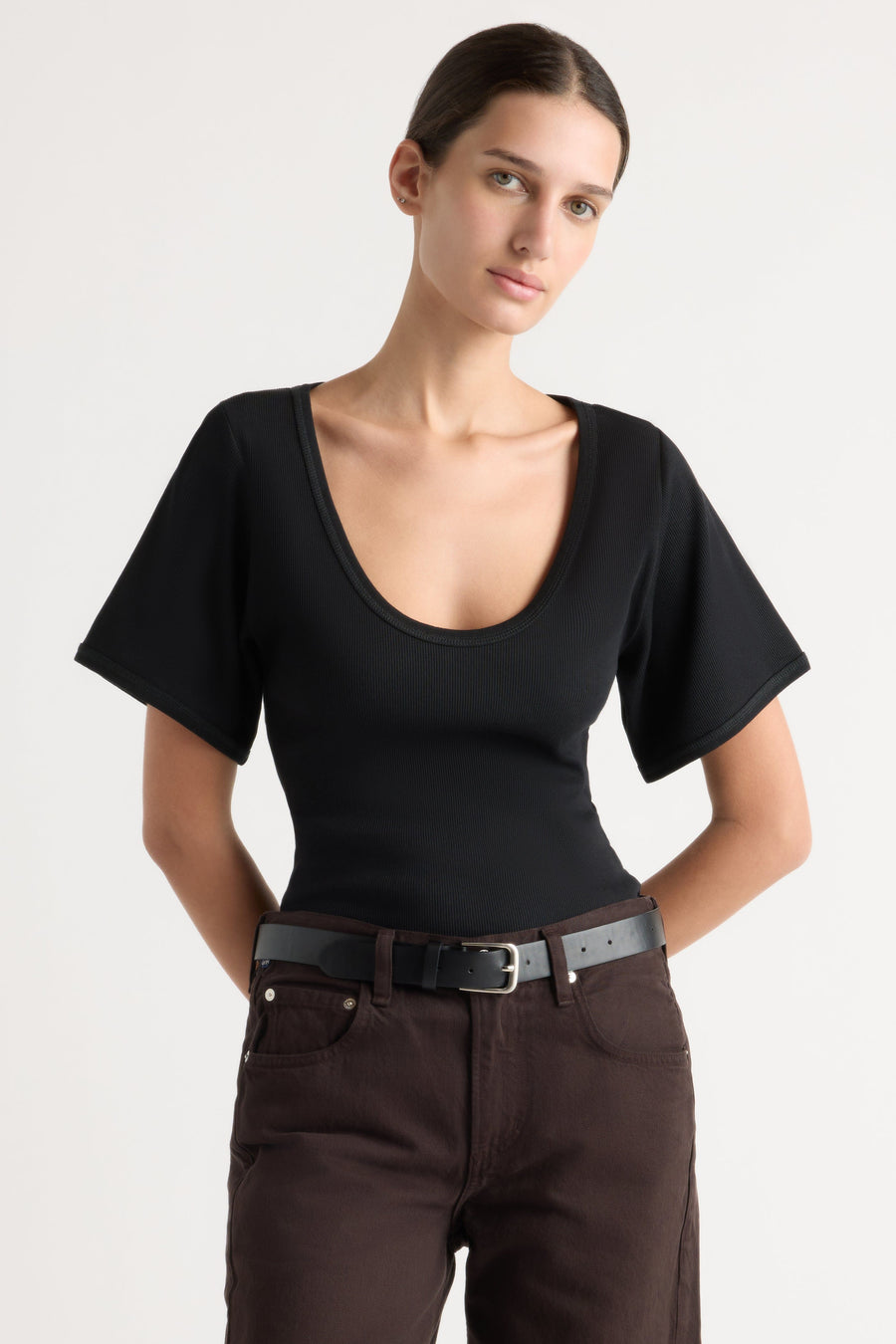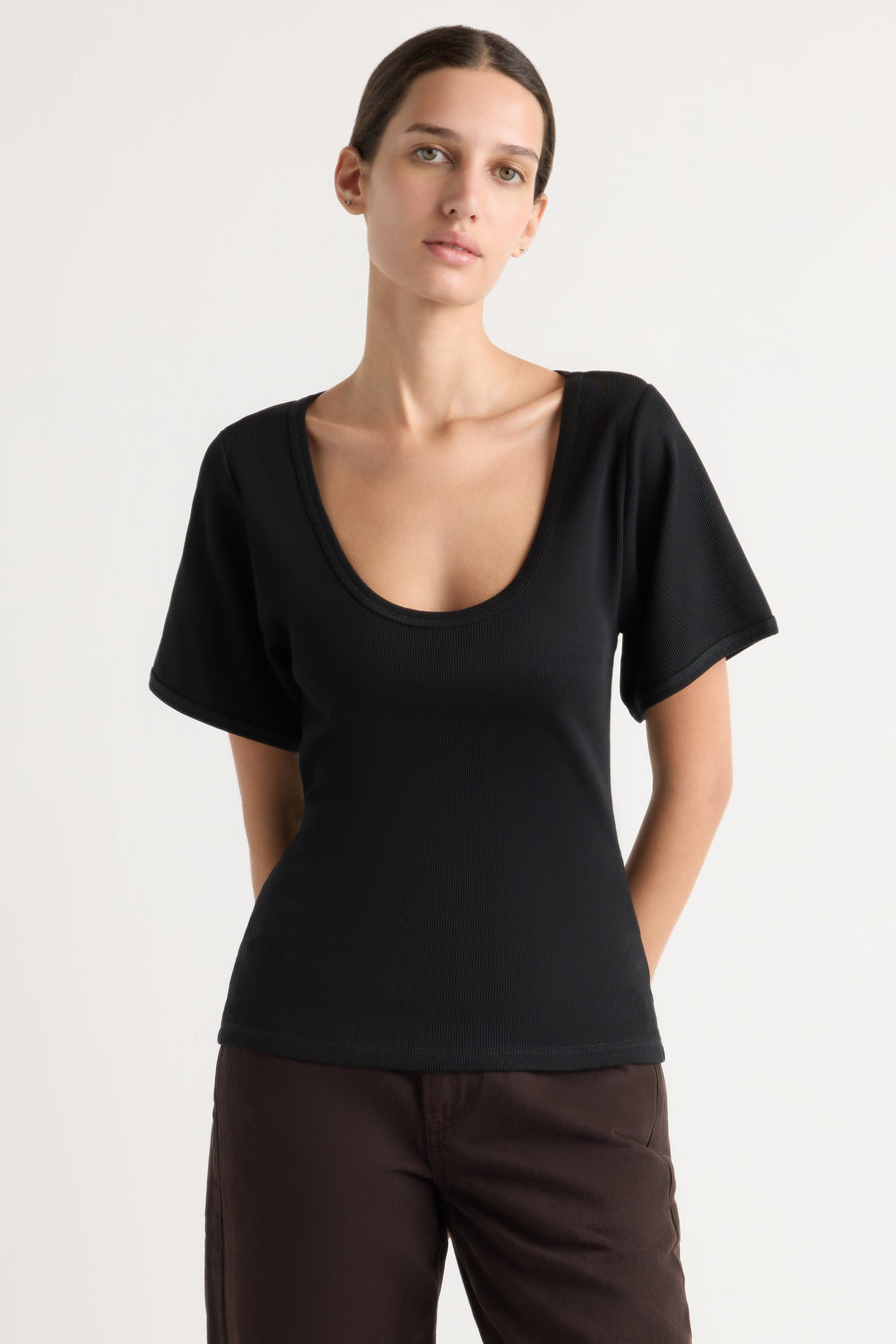 One of my faves Got the dress and the tee i loved it so much - wish there more colours! Scoop neck fit is lowish as another reviewer said, but its totally fine as long as you have more of a triangle or plunge bra. Really nice fabric. VERY slimming - accentuates the shoulders and bust so you look nipped in!